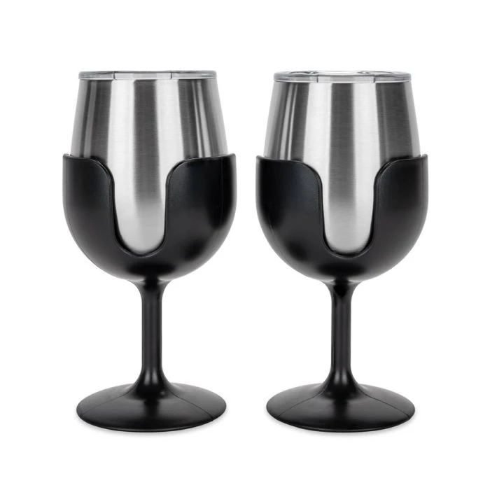 Camco Life is Better at the Campsite Black Wine Tumblers, 2-Pack