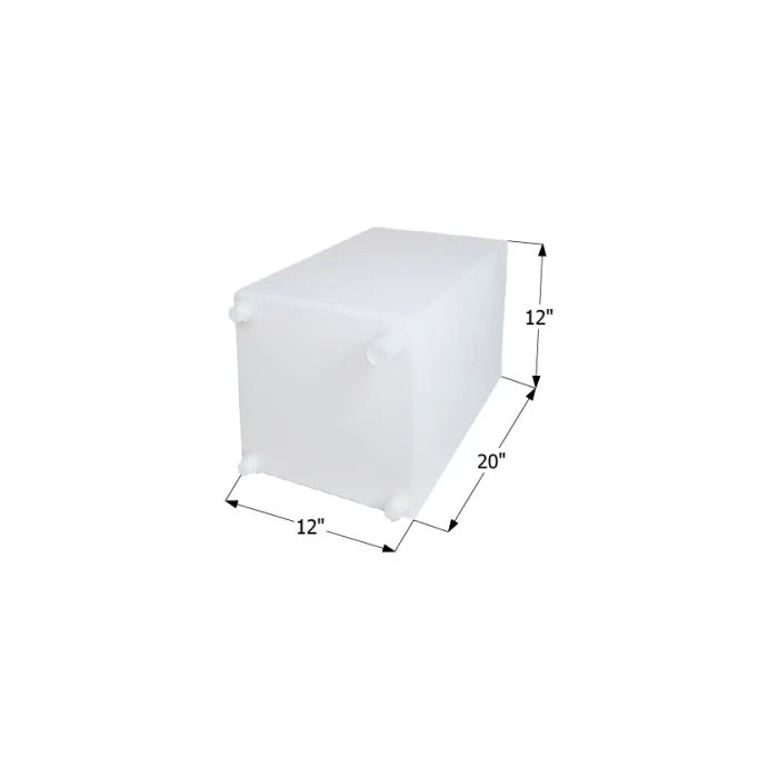 Tank w/ 3/8″ FPT (3), 1 1/4″ Filler Boss (1)Roto-molded, one piece construction for ultimate durability. 3 hookup fittings and 1 fill fitting preinstalled for convenience of use in any orientation.