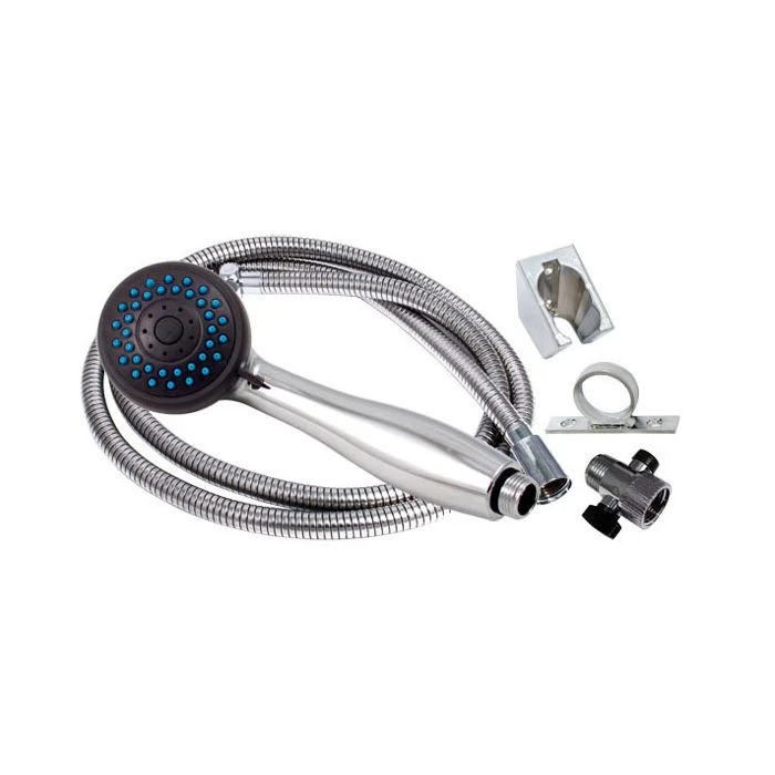 Triple function shower head with detachable flow controller. Spray, massage, or massage/spray settings. Kits include hose guide, 3 position bracket, and 20″ hose. Chrome kit includes a stainless steel hose, white kit includes a white vinyl hose.