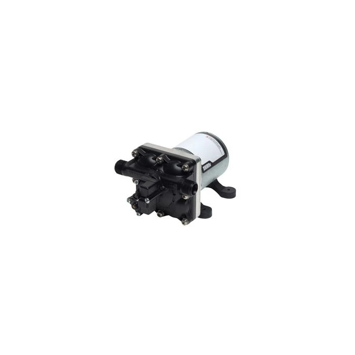 SHURflo New Revolution fresh water pump design was created with a unique one-piece diaphragm and internal by-pass, assuring long life and top performance in all plumbing systems. Designed as the next legendary pump to exceed the expectations of our customers, the Revolution Pump is built for high flow demand, low noise and no rapid cycling. SHURflo quality reputation has been built on the reliability and dependability of every pump we build. The 4008 Revolution fresh water automatic demand pump is super quiet, thermally protected and can run dry without damage. Mounts in any position. “Green” design for reduction of hazardous waste and power consumption. Features automatic thermal overload protection and built-in check valve.