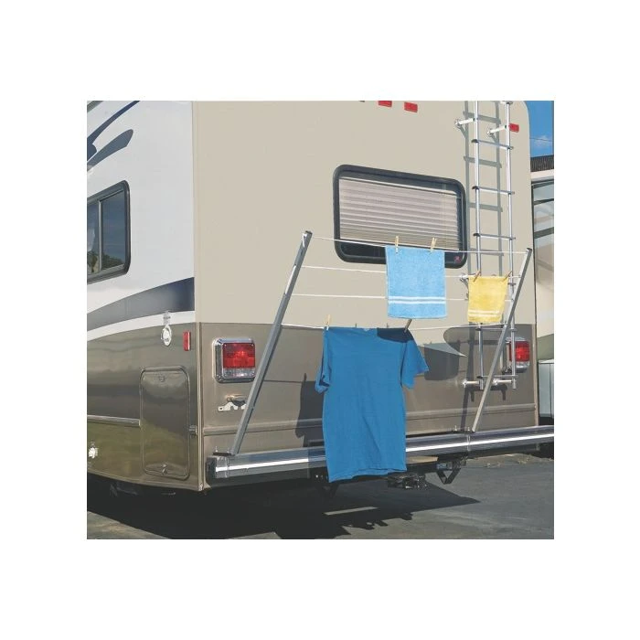 Towels, suits and more have a place to dry out of the way with our versatile clothes line. The aluminum tubes are removable and the hardware can stay put on a 4” or 4.5” sq. bumper.