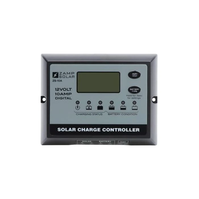 Zamp Solar 200 Watt Portable Solar Charging System features our 15 Amp solar charge controller mounted on our EZ-View swinging bracket. The EZ-View Bracket allows the user to stand while viewing the digital deluxe solar charge controller. The Zamp Solar Digital Deluxe 15 Amp Solar Charge Controller is a 5 stage, weatherproof, PWM solar charge controller. A large digital display shows the user battery voltage, an instant view of amps from the solar panel and how many amps charged the battery over the period of time.. 3 indicator lights show – Faults (any errors) | Charging (solar is charging the battery) | Full (battery is full and solar is maintaining).